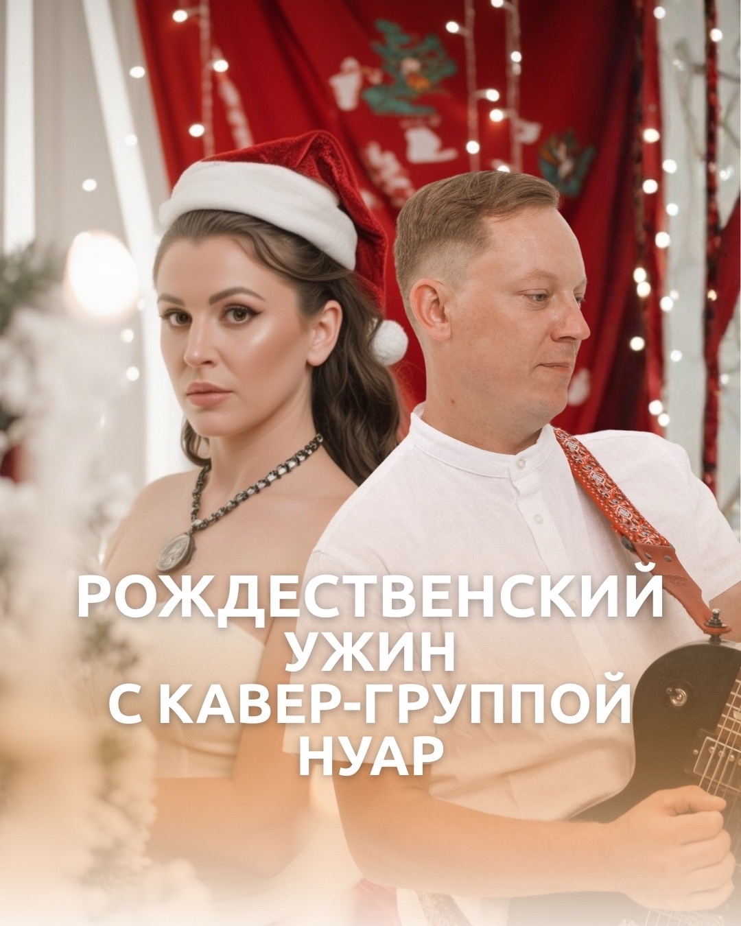 Живая музыка в исполнении кавер-группы «Нуар» под звуки гитары добавит этому ужину особое теплое рождественское настроение: